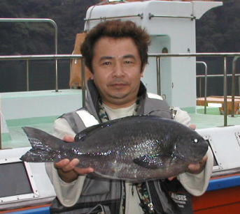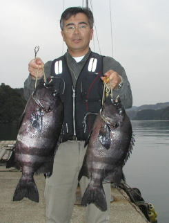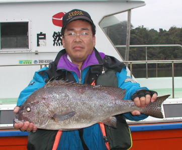 | 力武さんは小立島ポールで3.9kg(57cm)と3kgのイシダイを釣りました。 | 薬王寺さんは大立島西の鼻で2kgをゲット。 |