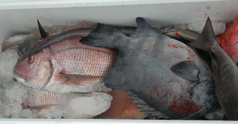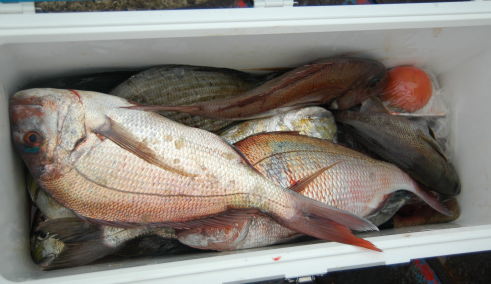 イスズミ、バリがたくさんいるそうです。マダイは小さいものがちらほらですが、クロが