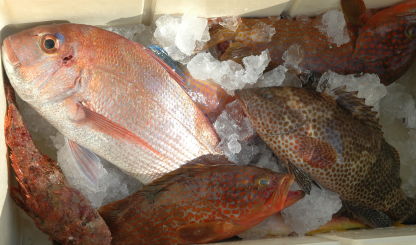 釣行会の前々日にテスト釣行した際の釣果。アコウは1kgありました。 |