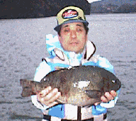 | 薬王寺さんが小立島南で釣った 1.3kgのクロです。 |