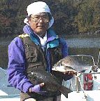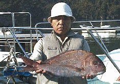井上さんは大立西のハナで2.8kgのマダイを釣りました。 | 石井さんは中瀬4番でマダイ、コロダイの良型を釣っています。 コロダイは3.1kgありました。 |