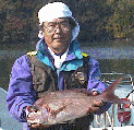 大立西のはなにてコロダイ2枚3.4kg、3.3kg を釣りました。すごい引きでした。 4号竿に8号ハリスの仕掛けでした。 |