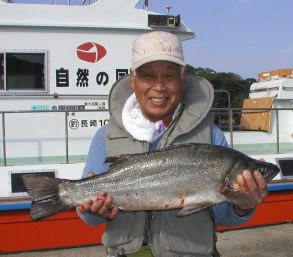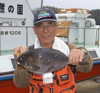 今週もフエフキが釣れていました。大立島西のハナで、西村さん。 |