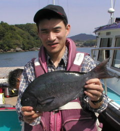 | 中瀬2番の川上さんはイサキに混じって1.5kgのクロをゲット。 | 大橋さんも1.5kgを西瀬4番で釣っていました。 |