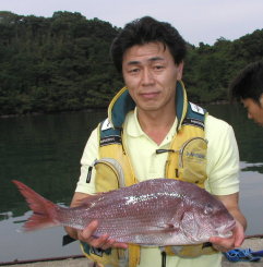 | 安納さんは上下両刀使いでイシダイ2.6kgも釣っていました。中瀬2番です。 | 水谷さんは高瀬1番でマダイ2.4kgをゲット。 |