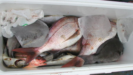 ![]() 大立南の横の長下さんのクーラーです。マダイとクロも見えます。 |