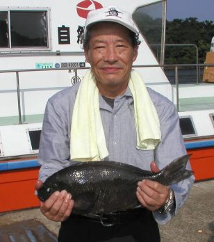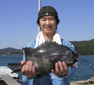 上野さんは大立島南でクロとイサキが大漁でした。写真は1.9kgの大物でした。 |