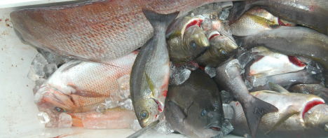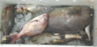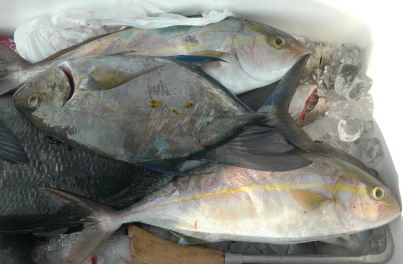 5kgクラスのヒラスを足元までよせましたが、ばらしてしまったそうです。イサキの型も良くなっていました。 |