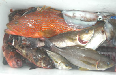 涼しくなってきたおかげ?、雨のおかげ?で釣果も上向きです。秋の魚(コロダイ、ハタ、ミズイカ)がイサキに混じるように