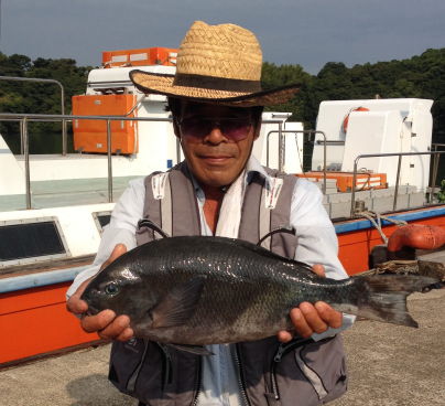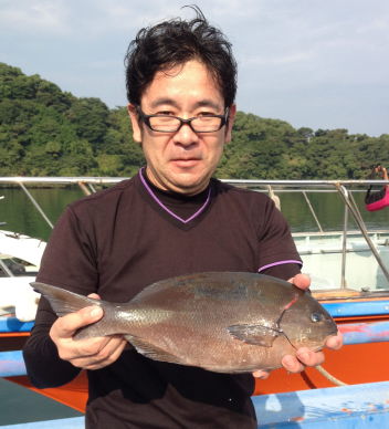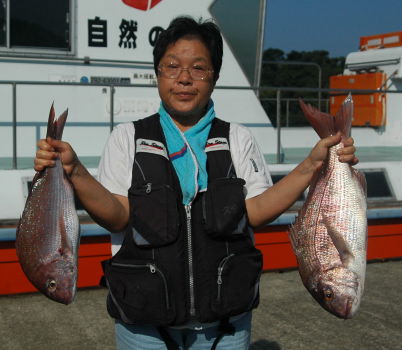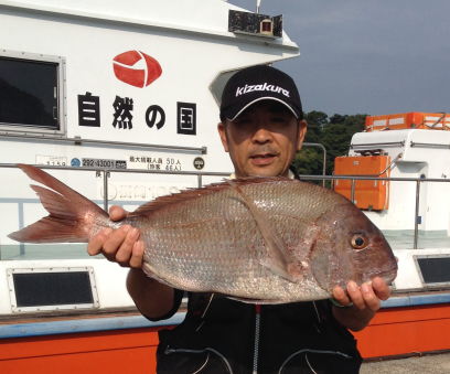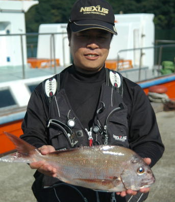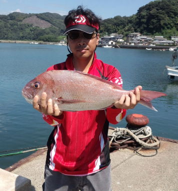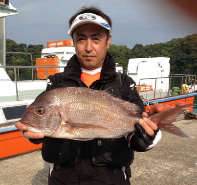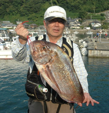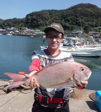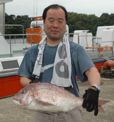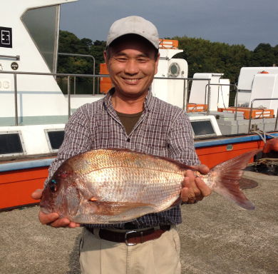 小立島西のワレで久々の大漁を味わった川口さん。 一番のマダイは3kgでした。 |